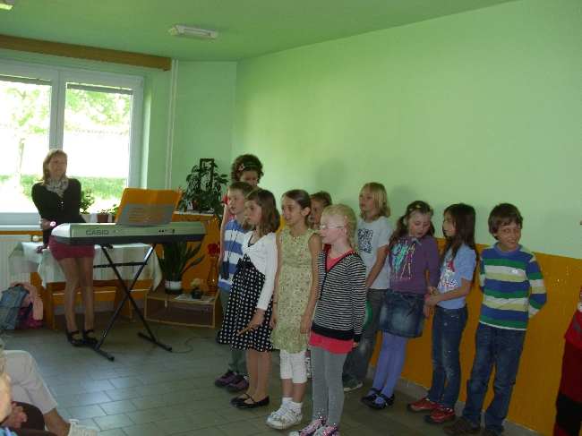 . Přišli jsme společně s nimi oslavit Svátek matek. Pásmo písniček a básniček se neslo ve veselém duchu a naše posluchače nadchlo. Společně jsme si zazpívali a my odcházeli s výborným pocitem, že jsme nadělili radost a lásku. Těšíme se zase příště....